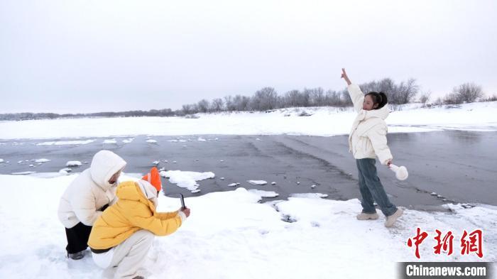 游客在“不凍河”河畔打卡拍照?!√K寧 攝