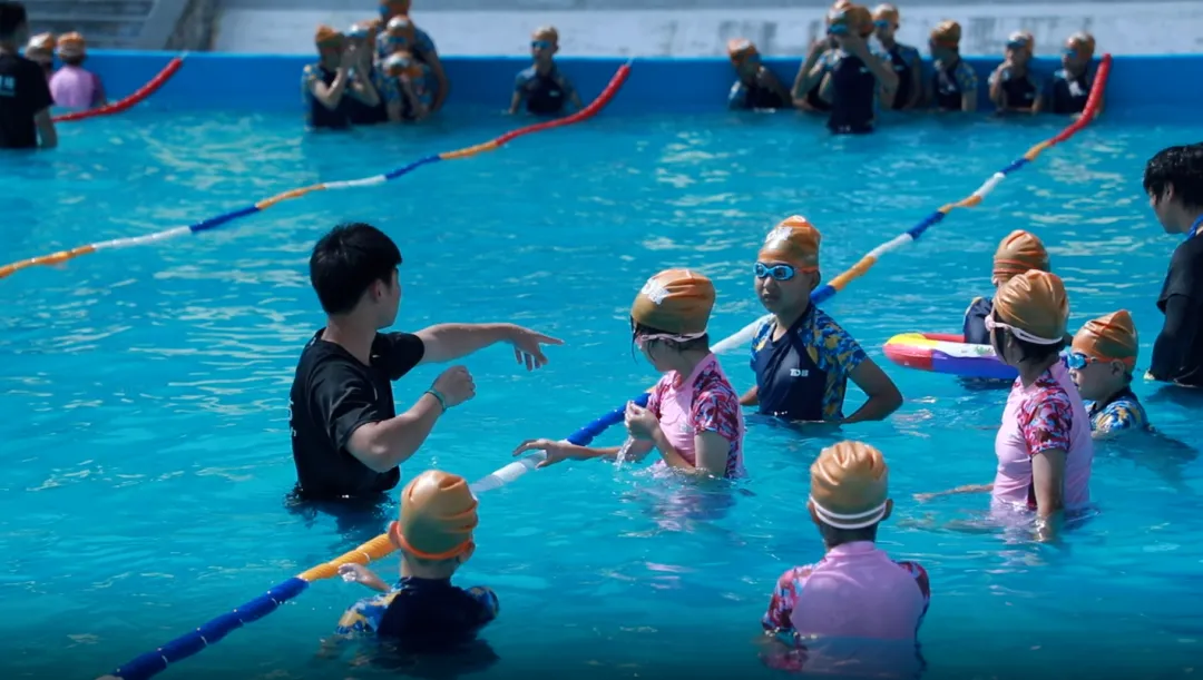 常德市臨澧縣四新崗鎮柏枝臺中學飛魚游泳館的培訓課。