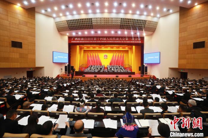 圖為廣西壯族自治區十四屆人大三次會議現場。林藝 攝