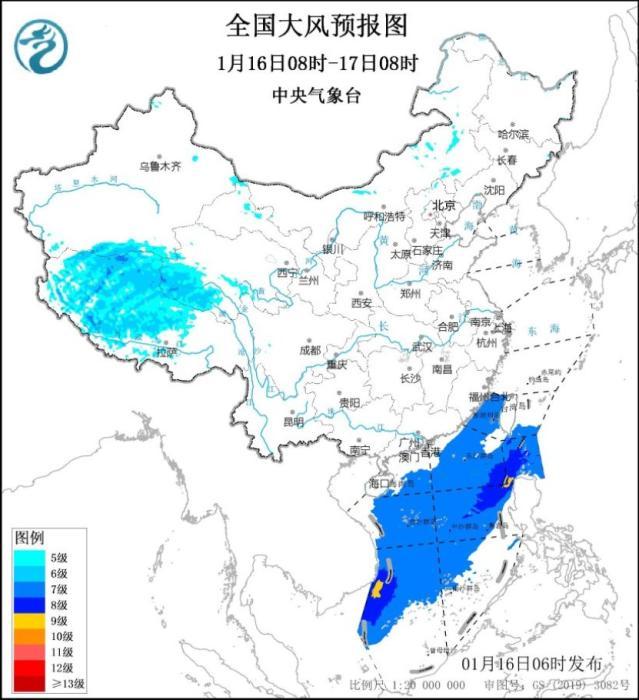 另外,公眾還需關注大風天氣的不利影響。預計今天,西藏中西部、青海西南部等地將有5~6級、陣風7~8級的大風;臺灣海峽、巴士海峽、南海大部海域將有7~8級、陣風9級的東北風,其中巴士海峽、南海東北部和西南部的部分海域風力可達9級、陣風10級。中央氣象臺今晨繼續發布大風藍色預警。