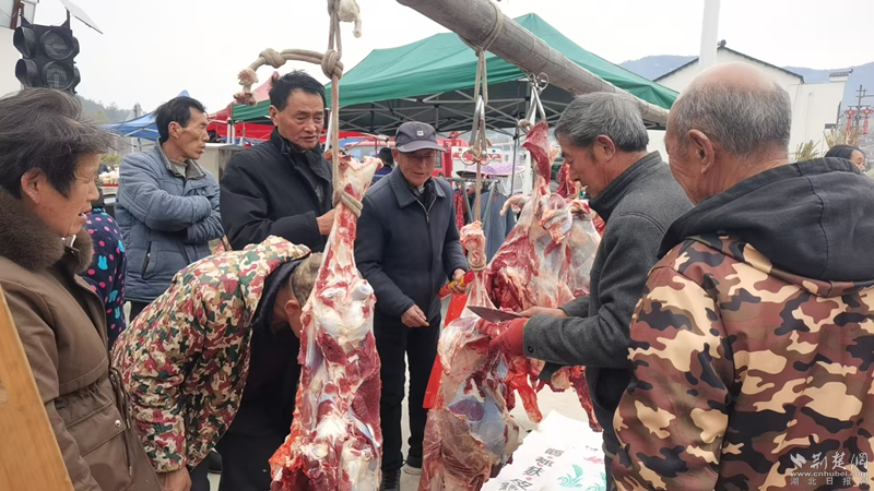 “今天賣了3頭牛共計3.5萬元。”夏家河村村民謝先勇說,很多來趕集的村民和他一樣,借助集會把家里養的牛、羊、豬進行售賣,再購買其它過年的物資。因此,縣城的很多市民,驅車四十公里山路跑來趕集,就是為了搶到地道的牛羊肉,過年招待親朋好友。