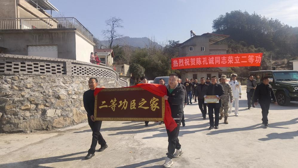 荊楚網(湖北日報網)訊(通訊員 胡丹)“陳叔!恭喜啊,您兒子在部隊又立功了!”1月13日,南部戰區海軍某部隊聯合麻城市人武部、市退役軍人事務局、福田河鎮政府,到該鎮雙廟關村為現役軍人陳孔誠家庭送上“二等功臣之家”牌匾及獎勵金,讓軍人軍屬共享尊崇榮光。