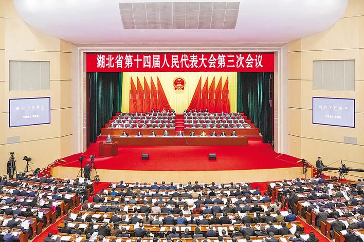 1月16日,湖北省第十四屆人民代表大會第三次會議在武漢開幕。 (湖北日報全媒記者 任勇 攝)
