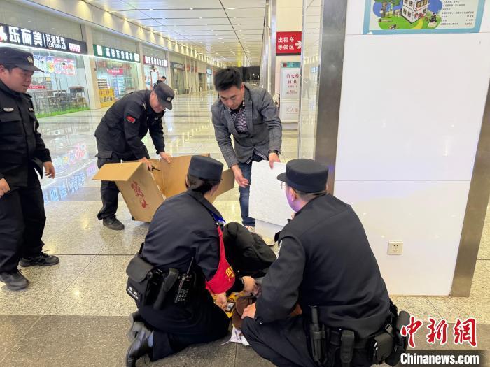 因無(wú)法確認(rèn)該女士的病因,民警再次撥打120了解救護(hù)車到達(dá)時(shí)間,在電話中向醫(yī)生描述病人癥狀,并咨詢現(xiàn)場(chǎng)可緩解其疼痛的方法。隨后,考慮到冬季入夜后氣溫驟降,地面十分冰涼,為防止旅客體溫下降引發(fā)其他問(wèn)題,民警從周邊商鋪找來(lái)紙箱和毛毯,其他工作人員也找來(lái)熱水讓其服用。