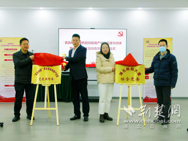 “首首相聯(lián)”綠色智能船舶產(chǎn)業(yè)鏈黨建共同體和湖北船舶大廈綜合黨委揭牌儀式。 通訊員供圖