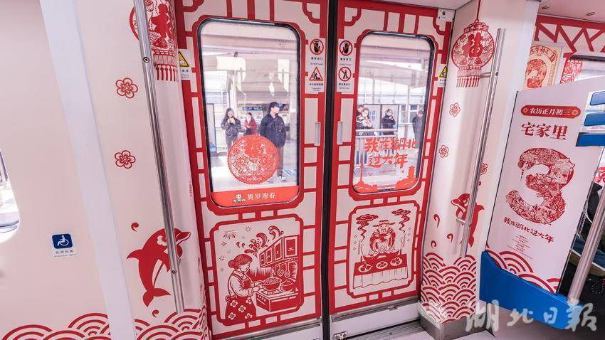 湖北日報訊 (記者馮袁玥、通訊員周婧怡)1月18日上午,“非遺賀新春”專列從武漢地鐵1號線起點站漢口北站緩緩駛出,“武漢剪紙”省級傳承人沈松柏及設計團隊耗時一個半月,為列車換上了非遺剪紙新衣。