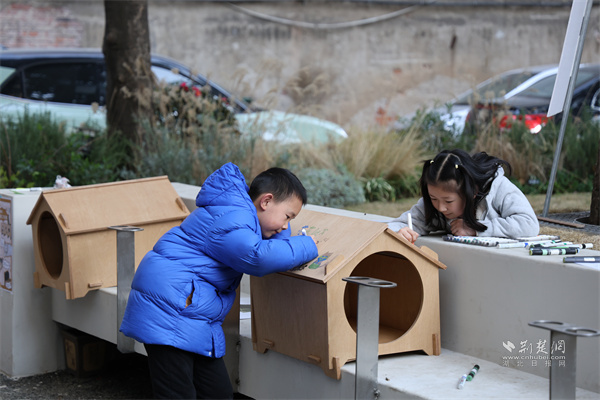 社區里的小朋友們紛紛加入貓屋再創作的行列,“貓咪群像”、“花花de窩”等系列貓窩作品由此產生。募捐而來的防寒物品、碗盆、貓糧等物品被精心布置在貓窩周圍,社區居民主動認領并承擔貓窩的日常維護和認養等工作。