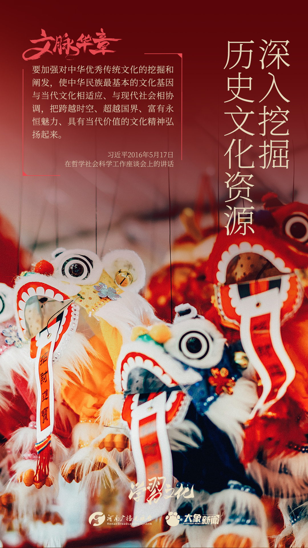 “春節——中國人慶祝傳統新年的社會實踐”被列入聯合國教科文組織人類非物質文化遺產代表作名錄,彰顯了中華優秀傳統文化的深厚底蘊,也是我國歷史文化資源保護的又一成果。習近平總書記十分重視歷史文化資源的挖掘、利用,多次發表重要講話,滿載對傳承和發展中華優秀傳統文化的期許。我們一起學習。