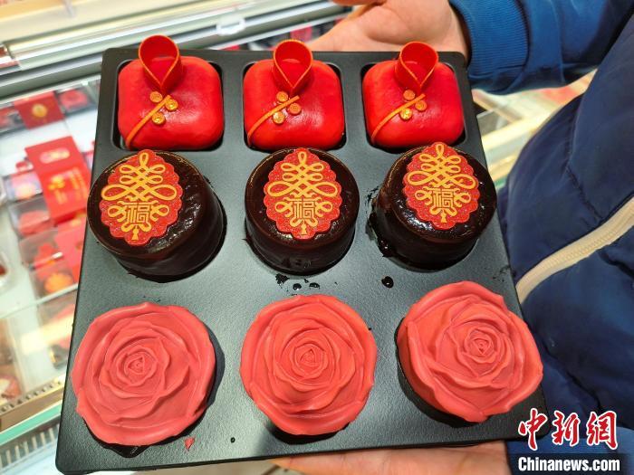 圖為湖南長沙1月份熱銷的國風(fēng)新春慕斯蛋糕禮盒。中新社記者 唐小晴 攝