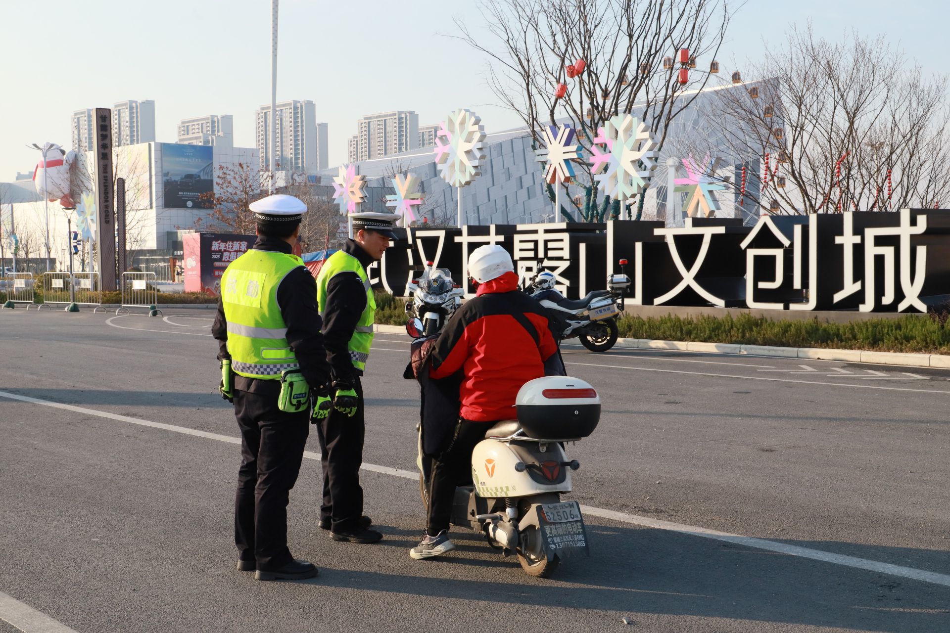 黃陂交警在甘露山國際滑雪場路段執勤。通訊員供圖