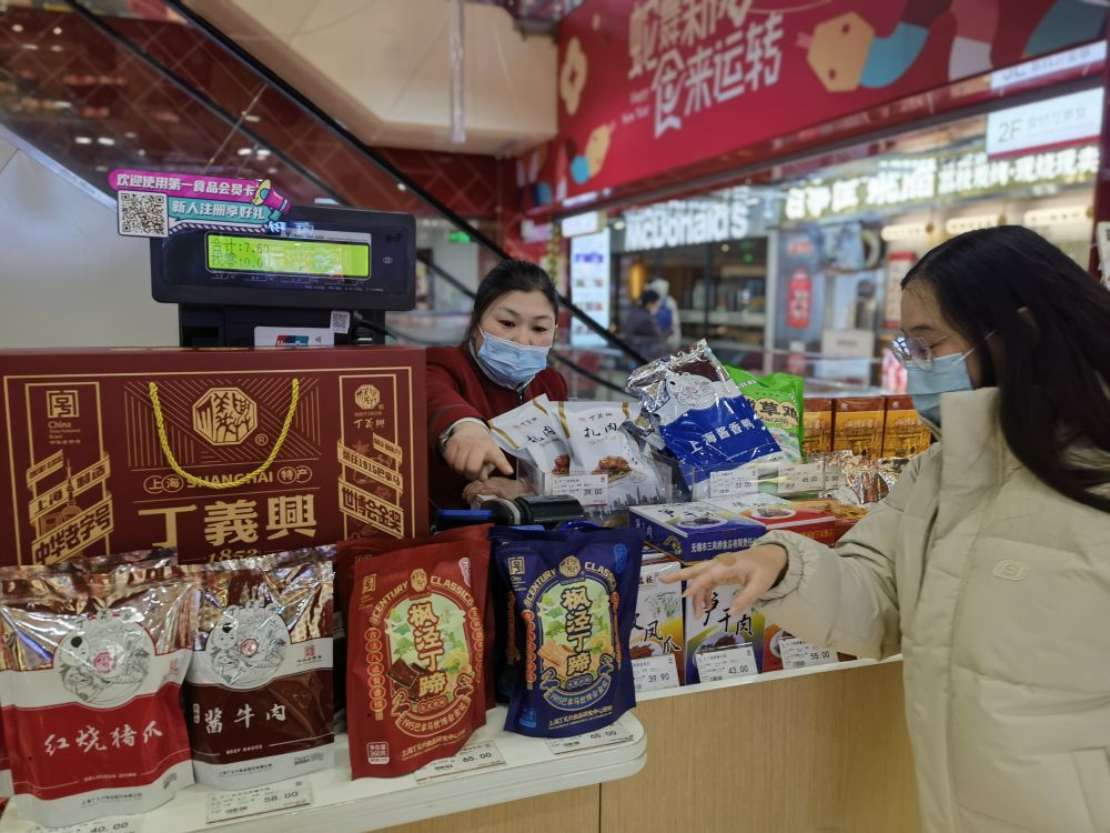 第一食品專柜領班張震說,隨著中國農歷春節臨近,自己和同事們忙得腳不沾地。“本地熟客講究老味道和實惠,海內外游客們則希望‘伴手禮’好吃又漂亮。精致的‘上海禮物’文創禮盒、外包裝有著上海地標元素的美食銷路特別好。”