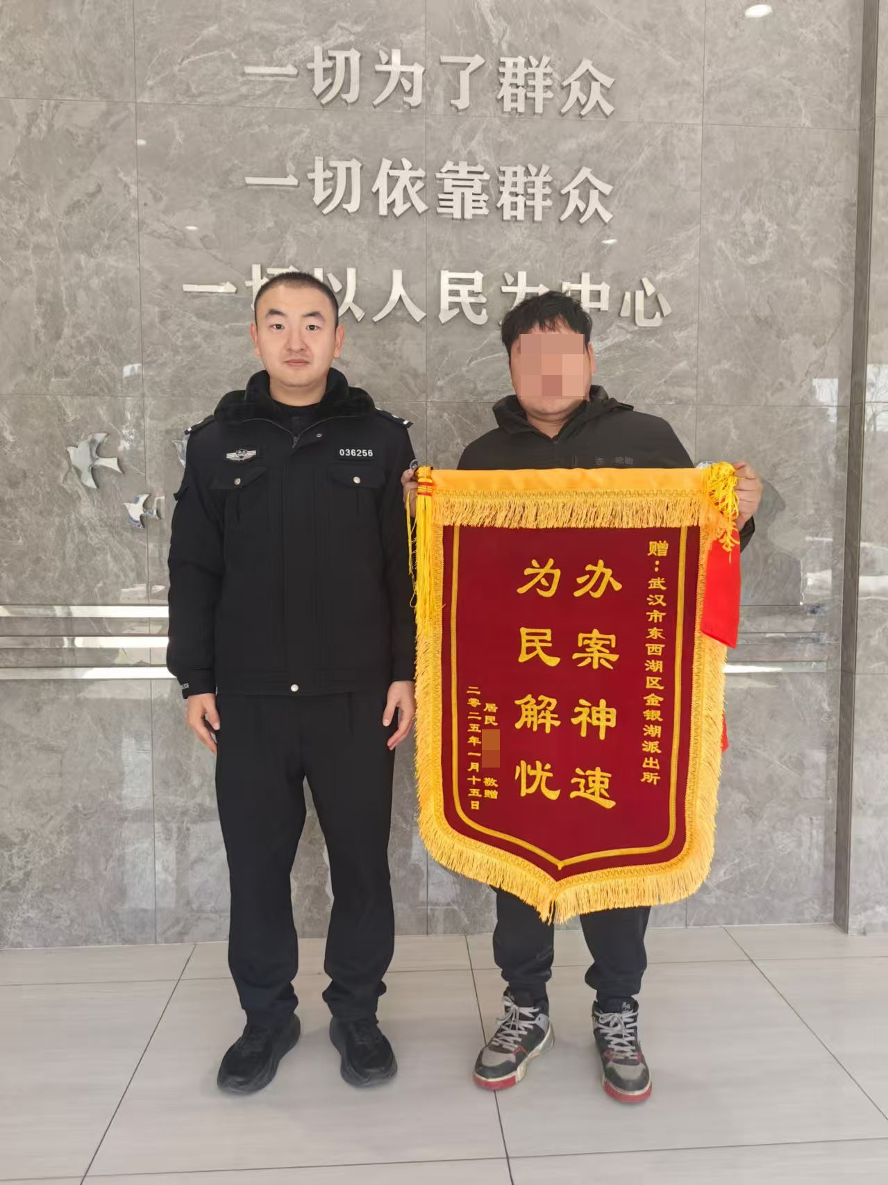 1月15日,民警將被盜電動車完好發(fā)還給報警人。“真是給我追回了不小的損失,太感謝警察同志了!”次日,報警人又專程趕到派出所內,親手為辦案民警送上印有“辦案神速,為民解憂”字樣的錦旗,并連連致謝。