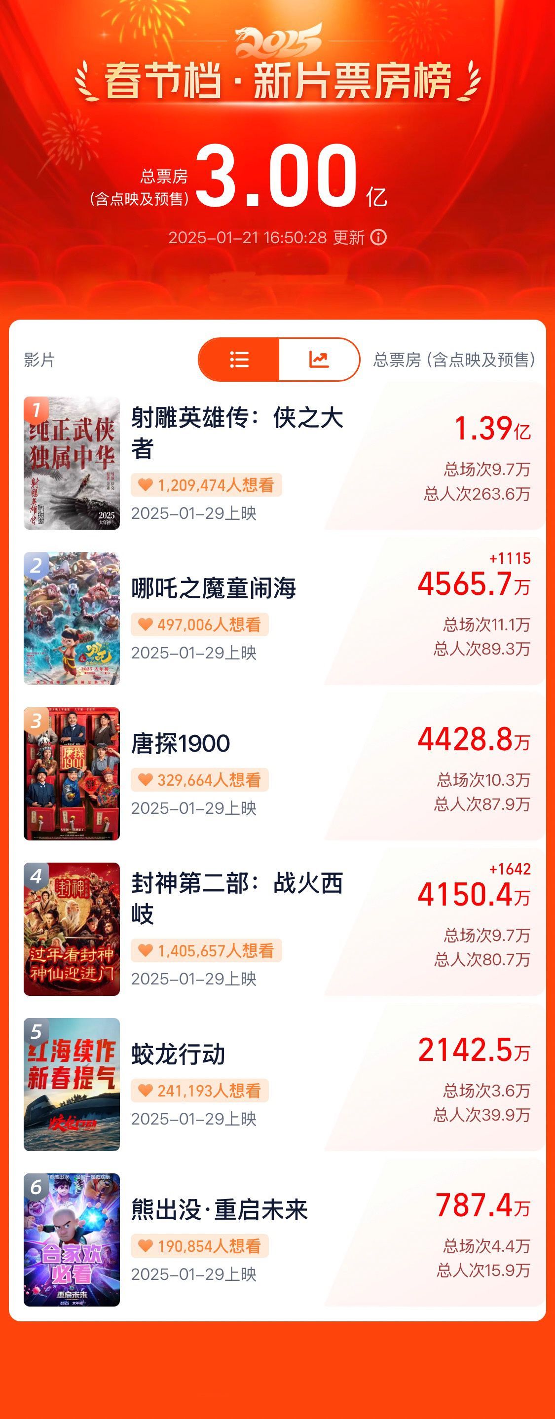 2025年春節(jié)檔上映新片預(yù)售總票房