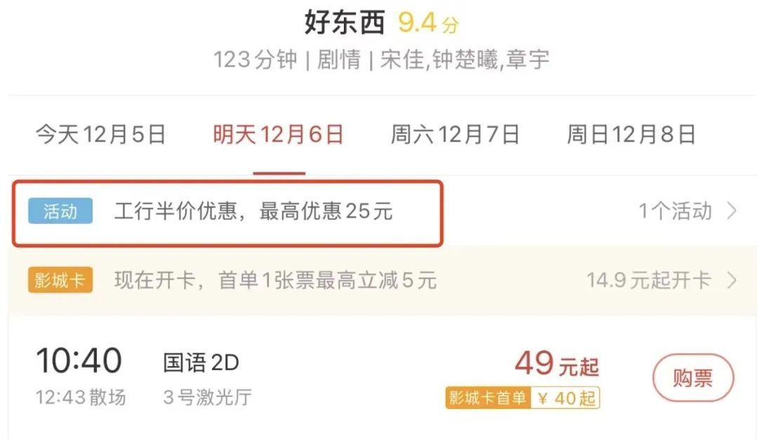 消費者可通過貓眼微信小程序或App,使用工行卡支付,享優(yōu)惠看爆款影片、隨機立減。