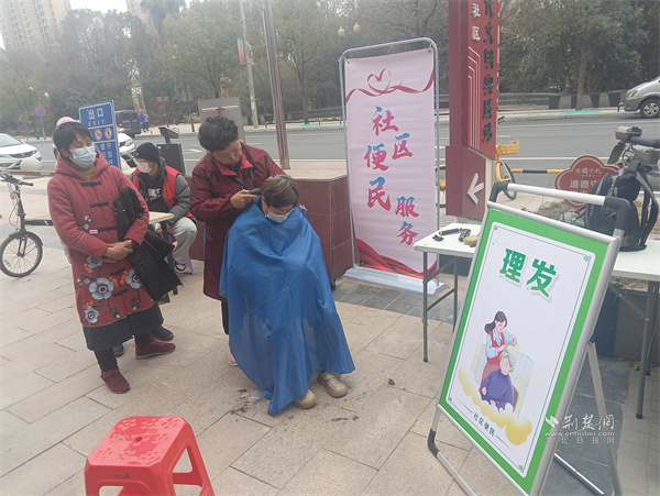 然而,這場年貨集市的“重頭戲”遠不止于此。社區(qū)還貼心地開設(shè)了一系列“濃情滿滿”的便民服務(wù)攤位。磨刀、理發(fā)、洗鞋、縫補、義診,每一個攤位都排起了長隊,居民邊聊天邊等待,臉上洋溢著對新年的美好憧憬。
