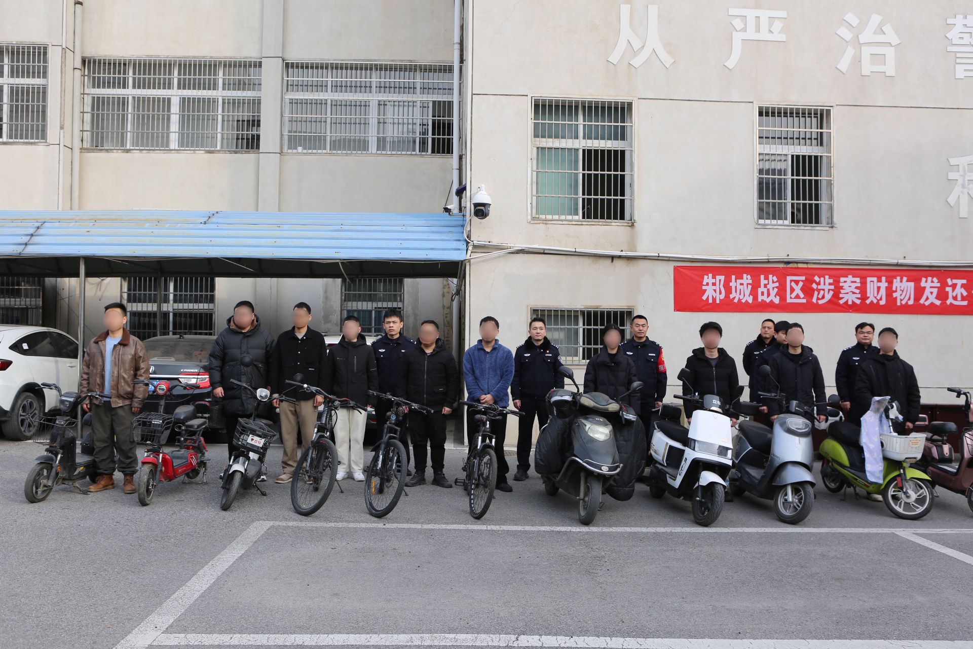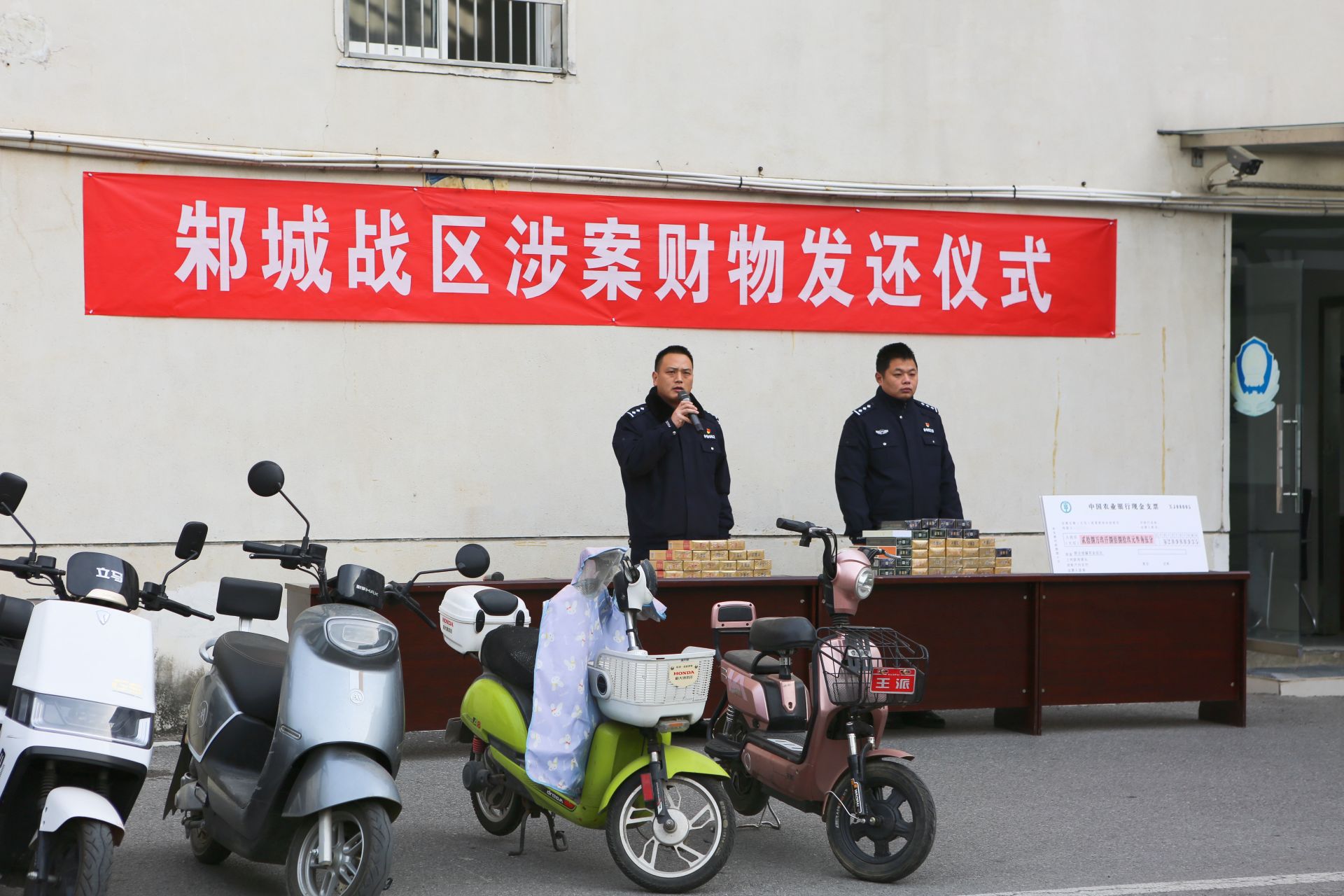盡管天氣嚴寒,發還儀式現場氣氛卻十分熱烈。分局刑偵大隊、反詐中心和邾城派出所民警依次將50萬余元的涉詐資金、11輛被盜電動車、自行車,以及其他價值5萬余元的被盜財物發還給受害群眾。財物失而復得,大家的激動和喜悅溢于言表。