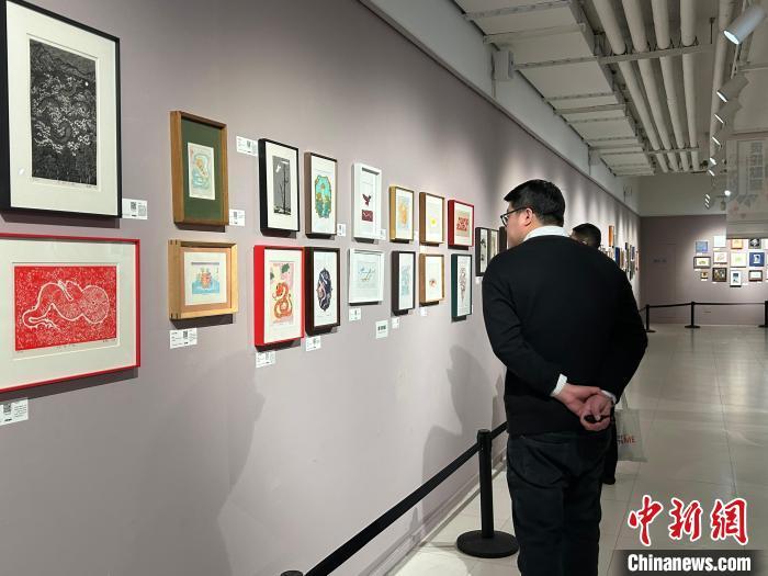 “靈蛇獻瑞——央美乙巳蛇年賀年小版畫展”1月1日起在北京展出。 中新社記者 國璇 攝