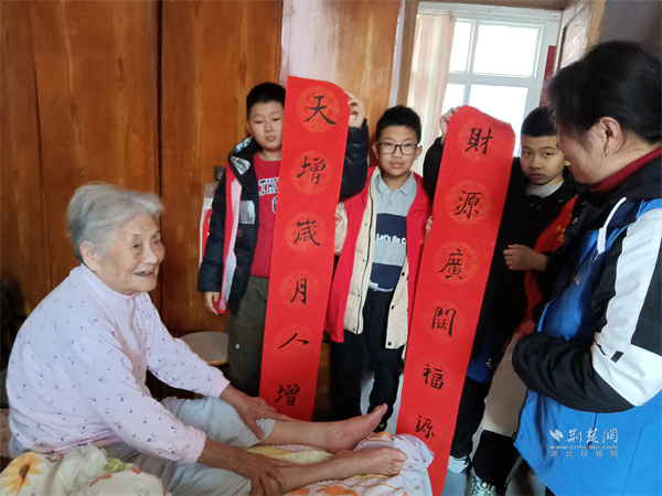 活動當日,在社區工作人員的帶領下,一群充滿朝氣的青少年志愿者,帶著他們親手書寫的對聯以及轄區愛心單位提供的健康禮品,來到戚明之老人的家中。孩子們將手寫對聯送到了戚老手中,表達了對戚老的敬仰之情,同時也送上了真誠美好的祝愿。