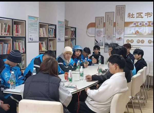 在長湖社區(qū)共享書屋,外賣小哥們圍坐一起,踴躍分享一年來的收獲,探討2025年閱讀計劃,暢想新年愿景。隨后,社區(qū)將精心準(zhǔn)備的迎新春慰問物資送到外賣小哥們手上,把關(guān)愛和溫暖送到他們的心坎上。