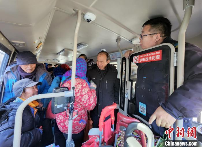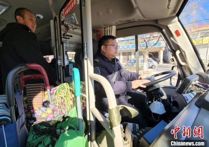 看到公交車駛來,一群大爺大媽肩扛編織袋,手拉花花綠綠的買菜車,蜂擁至車前。司機馬同林從駕駛位上靈活跳下,到車門處或攙或扶幫村民們提拉年貨、有序入座。大蔥、雞蛋、豆腐等山里特產,三五分鐘就把車廂前后塞得滿滿當當。