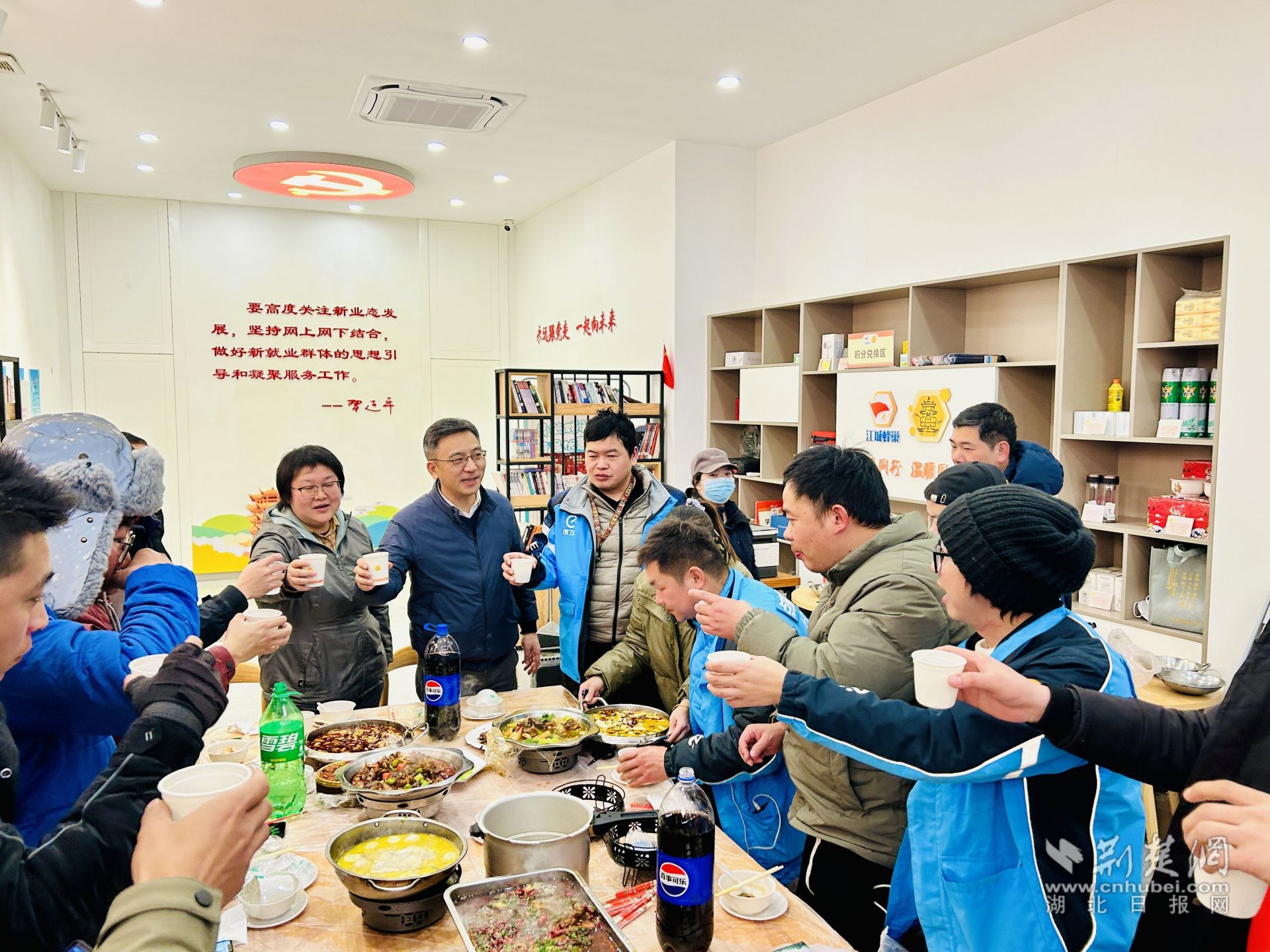 荊楚網(湖北日報網)訊(通訊員:劉永慧)新春佳節將至,為切實做好新就業群體關心關愛工作,1月22日,武昌區黃鶴樓街道工會在新就業群體服務驛站開展“‘騎’樂融融迎新年”活動,邀請轄區新就業群體共吃暖心“年夜飯”,共度幸福年。