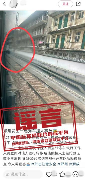 真相:近日,網傳“有人在鄭州解放橋跳下被火車撞傷,導致列車晚點”。經核實,網傳內容不實。鄭州鐵路站1月22日發布辟謠消息稱,經核實:2025年1月21日14時32分,一男性下車旅客擅自從鄭州站站臺北端進入線路岔區由南至北行走,車站工作人員跟隨勸說無效,緊急通知即將進站的G695次列車臨時停車避讓,未出現相撞和人員受傷。隨后相關部門將其控制并帶離。經醫院診斷,該男子被確診為“精神障礙”疾病。(來源:“清朗河南”微信公眾號、頂端新聞)