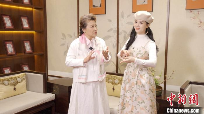豫劇名家小香玉(左)給越劇演員裘丹莉輔導(dǎo)豫劇。 節(jié)目組供圖