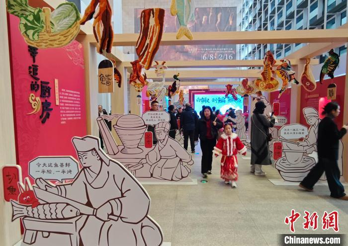 當天開展的第三屆“守味湖南年”馬王堆美食文化特展,以“轪侯家宴”為主題,從“辛追的年貨單”“辛追的廚房”“辛追的筵席”“辛追甄選”四大板塊,分別展示了西漢的食材、烹飪方式、用餐禮儀以及當代湖湘美食,打造了一場穿越時空的飲食文化盛宴。