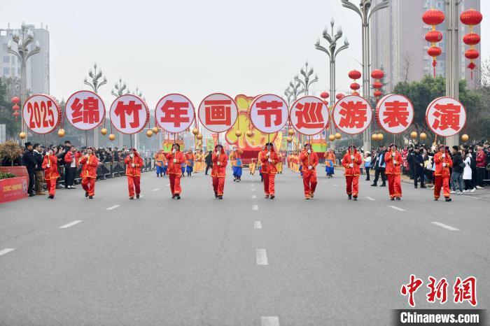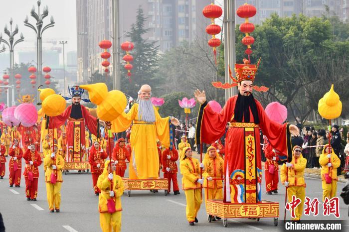1月22日,四川德陽綿竹,第二十四屆綿竹年畫節民俗巡游表演。中新社記者 張浪 攝