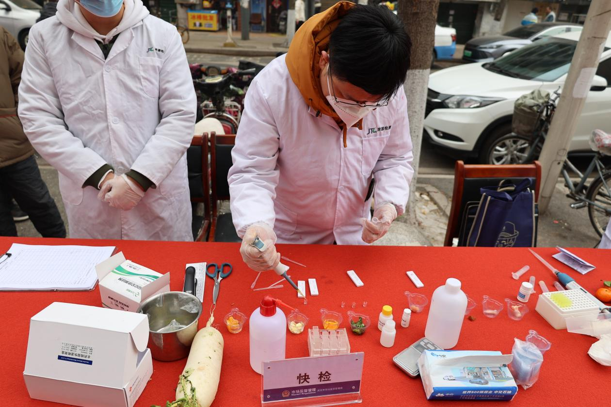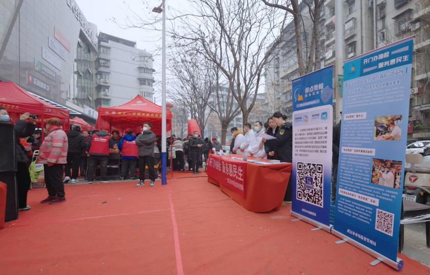 荊楚網(湖北日報網)訊(記者劉陽 通訊員吳培 吳比戈)為提振消費信心,提升服務品質,努力營造共建共治共享食品安全的良好氛圍,1月23日,在農歷小年到來之際,湖北省市場監管局、武漢市市場監管局和江岸區市場監管局三級聯動,走進江岸區紅橋里年貨市場,開展新春季食品安全“你點我檢 服務惠民生”專項活動,與市民一同關注、守護春節“菜籃子”。