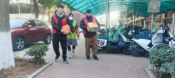 社區工作者為行動不便的老人送橙子上門。 通訊員供圖
