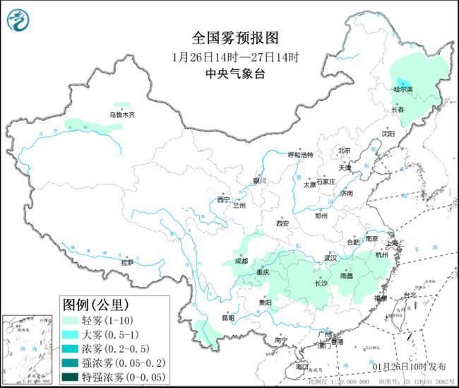 圖1 全國霧預報圖(1月26日14時-27日14時)
