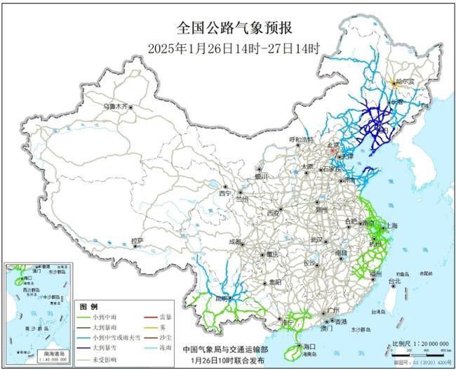 圖4 全國公路氣象預報圖(1月26日14時至27日14時)