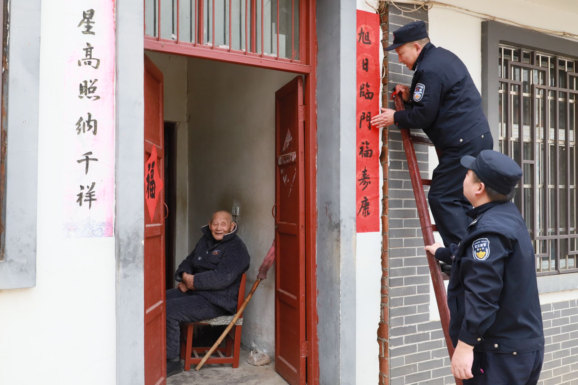 待村民們都領到對聯后,朱萬春又拎起了裝有春聯和漿糊的袋子,來到行動不便的老人家中。每到一家,朱萬春都細心地為老人挑選合適的對聯,然后小心翼翼地貼在他們的門上,用滿載新春祝福的春聯和飽含真情的福字,傳遞對老人們新年的美好祝愿。