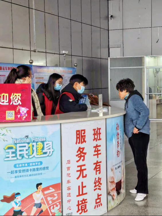 秉持著“旅客需求至上”的服務理念,青年志愿者們協(xié)助交通運輸局做好各類便民利民服務。車站內(nèi)設有功能齊全的便民服務點,為旅客們提供熱水、充電設備、應急藥品等各類貼心物資,解決了旅客們在旅途中的諸多不便與突發(fā)狀況。同時,志愿者們還積極協(xié)助車站工作人員進行信息登記、引導自助購票等服務,有效提高了車站的運營效率,讓旅客的出行變得更加便捷、順暢。