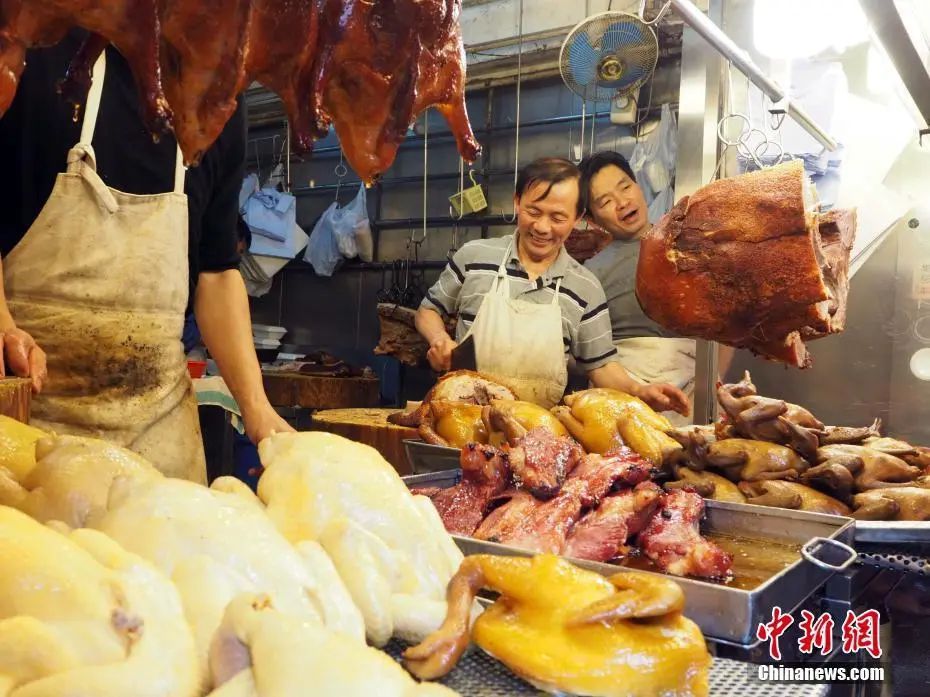 資料圖,春節前夕,在香港筲箕灣一街市,燒臘專賣店生意紅火。中新社記者 洪少葵 攝