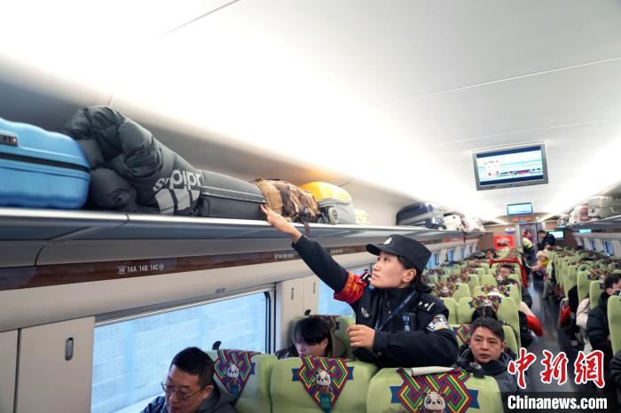 28日是除夕。如往常一樣,乘警旦增玉珍早早趕到成都東站,開始了一天工作的準備;動車到站后,她提前登車對列車全面檢查,與列車工作人員交接……從成都到阿壩州松潘縣,動車單程最少要一個半小時。旦增玉珍今天要往返6趟,工作結束時將是深夜。