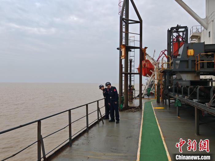 邊檢民警對外籍貨輪進行檢查。谷華 攝