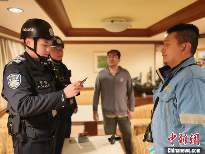 “您好,我們是中國移民管理警察,請出示您的護照。”在船舶的休息區,洪良國和同事們集合船員,逐一進行人證對照,仔細檢查生活區、操控室、工具間等部位的每一個角落。民警彭旭介紹,人證對照是通關入境的重要環節,如果發現護照有疑點,就需要進一步甄別,絕不讓任何一名不法分子出境或入境。