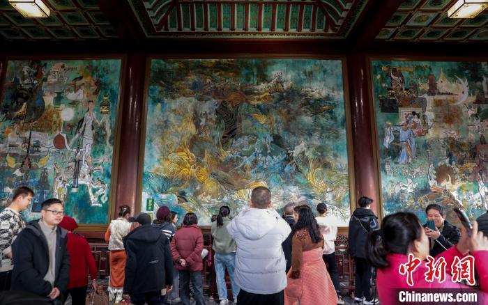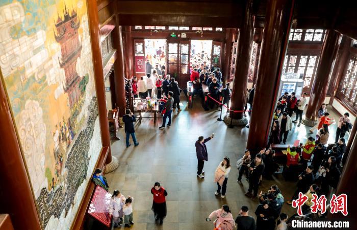 1月29日,農歷正月初一,武漢黃鶴樓公園游客眾多。八方游客登黃鶴樓過幸福吉祥年。圖為游客在黃鶴樓里游玩參觀。中新社記者 張暢 攝
