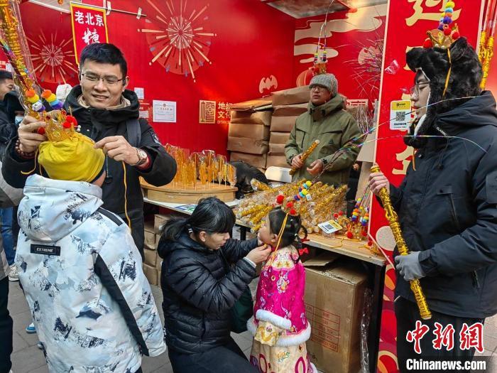 記者在現場看到,地壇廟會“年禮大集”精選故宮文創、中軸線文創、ViViCat文創、奶龍文創等IP產品,以及面塑、絹人娃娃、內畫、兔兒爺等傳統手工藝品,展現了傳統文化與現代設計的融合。龍潭廟會則精心策劃了一場“京華風物年禮大集”,涵蓋毛猴、風車、皮影玩偶、兔兒爺等非遺手工藝品,中國郵政、北京琺瑯廠、蛇墩墩系列等創意年禮,男女老少都能在這里淘到一份心儀的新春禮物。