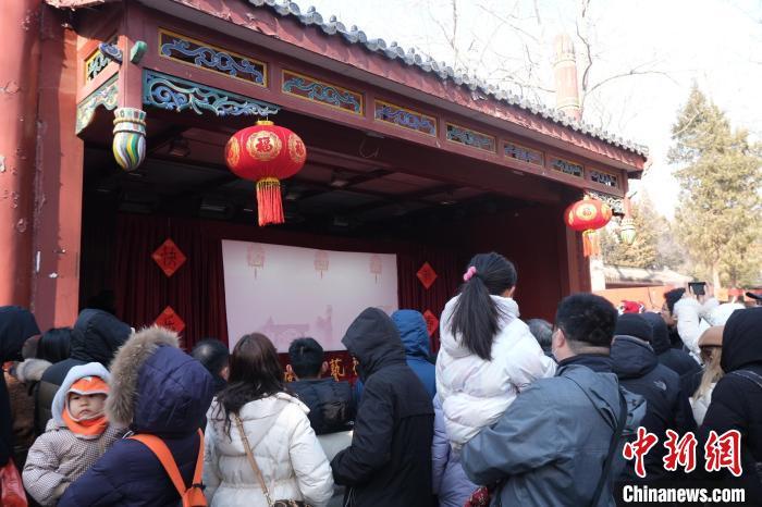 1月29日,中國農歷正月初一,游客在北京大觀園紅樓廟會觀看皮影戲表演。中新社記者 關雪昭 攝