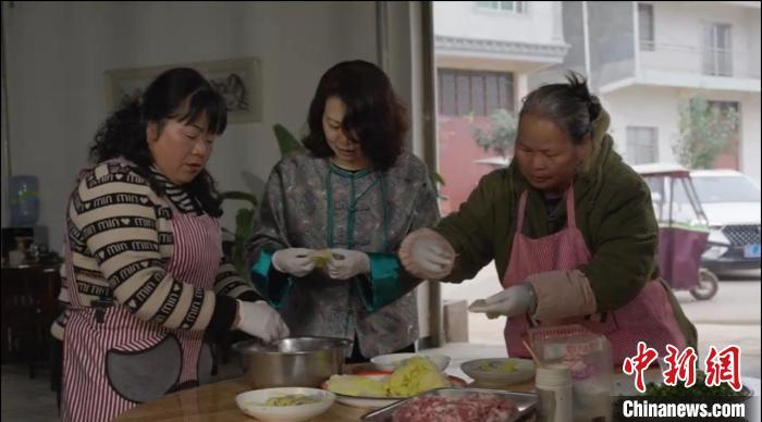 林萍(左一)與家人制作越南美食。《食在云南新春特別篇·僑這一家子》視頻截圖