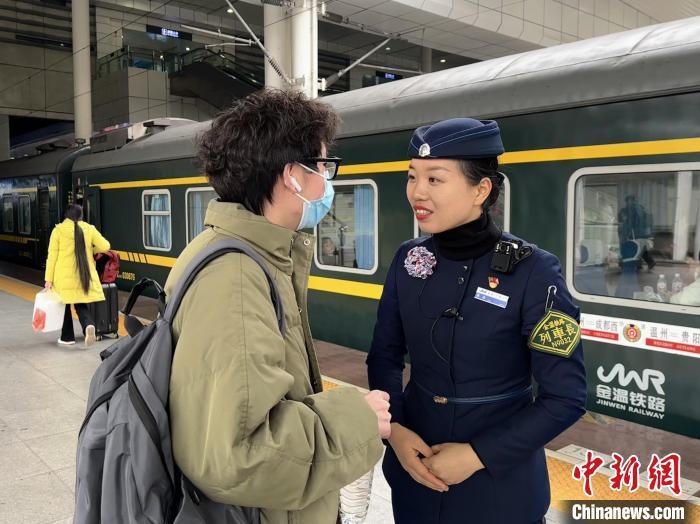 中新網溫州1月30日電(奚金燕 朱穎 鄭文君)“旅客們,請大家保管好自己的隨身物品,手機、錢包等貴重物品請貼身保管……”1月29日23時50分,浙江溫州開往成都西的K1256次列車滿載旅客緩緩駛離溫州站,浙江交通集團金溫鐵道公司列車長鄭珍一邊巡視車廂,一邊做著安全宣傳。