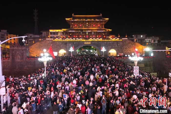 長汀古城燈火輝煌,水東橋、濟川門、古城墻上人群熙熙攘攘。長汀縣融媒體中心供圖