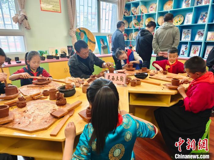 2024年5月28日,香格里拉市民族小學(xué)師生一起體驗黑陶制作。 中新社記者 韓帥南 攝