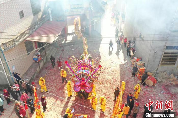 中新網江西彭澤1月31日電 (巫發陽 柯恒 趙斌)春節期間,江西九江市彭澤縣浩山鄉村民們敲起鑼鼓、舞起長龍,祈盼風調雨順、五谷豐登。