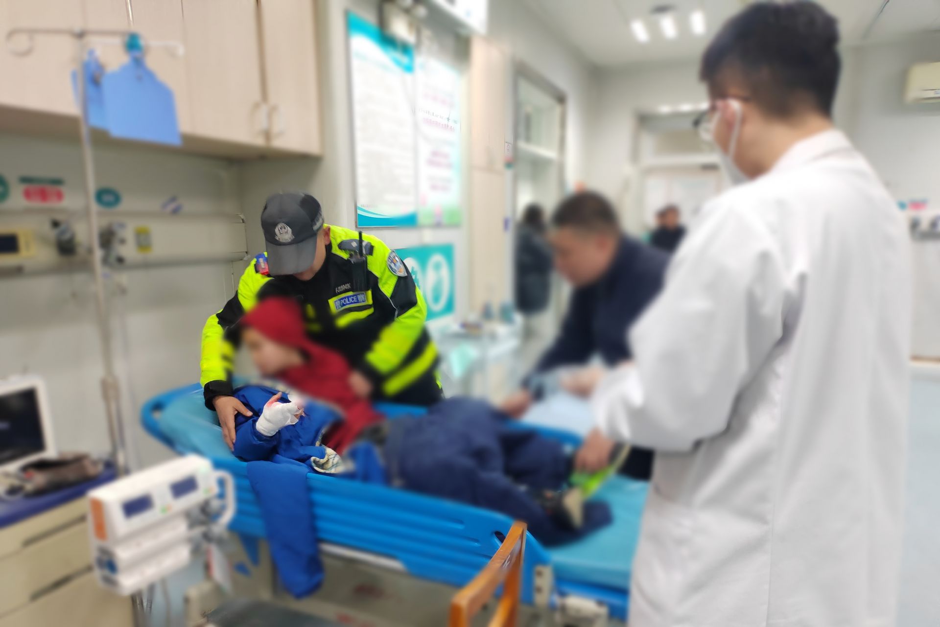 當(dāng)晚7時(shí)30分許,蔡甸區(qū)交通大隊(duì)接群眾報(bào)警求助:小孩手部嚴(yán)重受傷,現(xiàn)在協(xié)和江北醫(yī)院,需立即轉(zhuǎn)院至協(xié)和醫(yī)院漢口院區(qū)進(jìn)行治療,因晚高峰車流量較大,又是除夕夜,擔(dān)心路途上耽誤最佳救治時(shí)間,希望交警幫忙護(hù)送。接到報(bào)警后,大隊(duì)立即調(diào)度附近巡邏的兩名漢警快騎隊(duì)員謝奕楓、肖詩威前往接應(yīng)。在簡(jiǎn)單了解情況后,考慮到報(bào)警人本人飲酒,其妻子也因情緒較為激動(dòng)無法確保安全駕駛,快騎隊(duì)員謝奕楓立即主動(dòng)要求幫助駕車,并在車上負(fù)責(zé)安撫家屬情緒。另一名快騎隊(duì)員肖詩威則負(fù)責(zé)駕駛警車在前方開道。約20分鐘后,成功抵達(dá)武漢協(xié)和醫(yī)院漢口院區(qū)。當(dāng)快騎隊(duì)員準(zhǔn)備上前為受傷男童打開車門時(shí),本來趴坐在爸爸身上的他,突然探出頭,對(duì)著兩位“交警叔叔”連聲感謝。謝奕楓、肖詩威二人對(duì)孩子的傷情仍不放心,在停好車輛后,他們又返回急診室,一邊陪同男童就診,一邊安撫家屬情緒,直到報(bào)警人一家安頓好后才安心離開,繼續(xù)投身到春節(jié)護(hù)安保暢工作中。