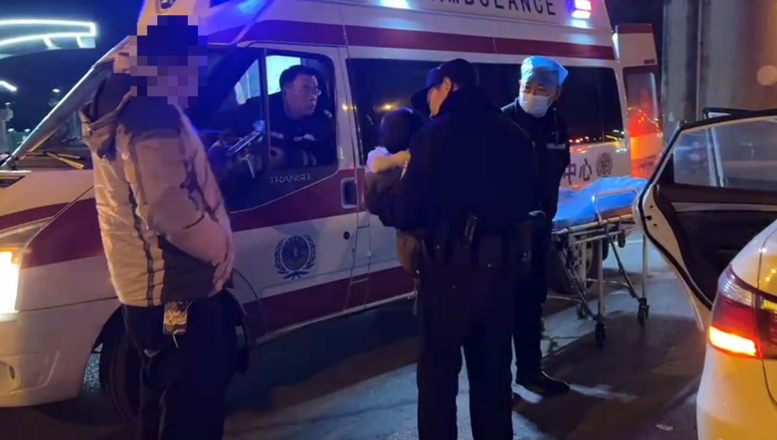 七八分鐘后,120救護車抵達現場,王怡協助醫護人員將車內受傷人員抱出并抬上救護車。