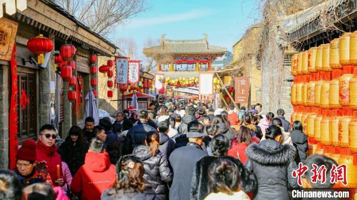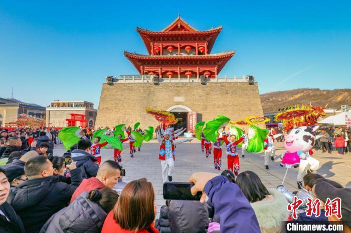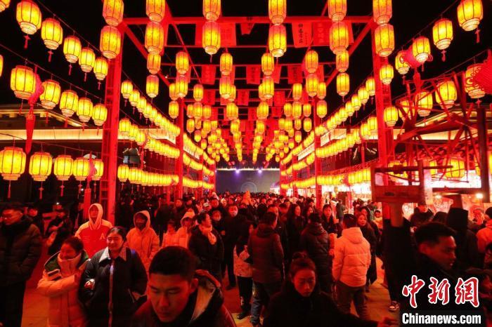 中新網陜西延安2月1日電 (記者 阿琳娜)春節假期,位于陜西延安的金延安旅游度假區里張燈結彩,“白+黑”民俗演藝樂不停,來自各地的游客歡聚于此,迎新年、祈祥福、沾喜氣,歡天喜地“賀新春”。